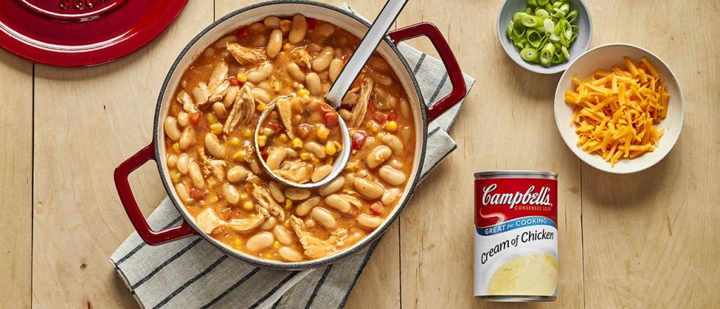 1 lattina (10 1/2 once) Campbell’s® Condensed Cream of Chicken Soup oCampbell’s® Condensed 98% Fat Cream of Chicken Soup